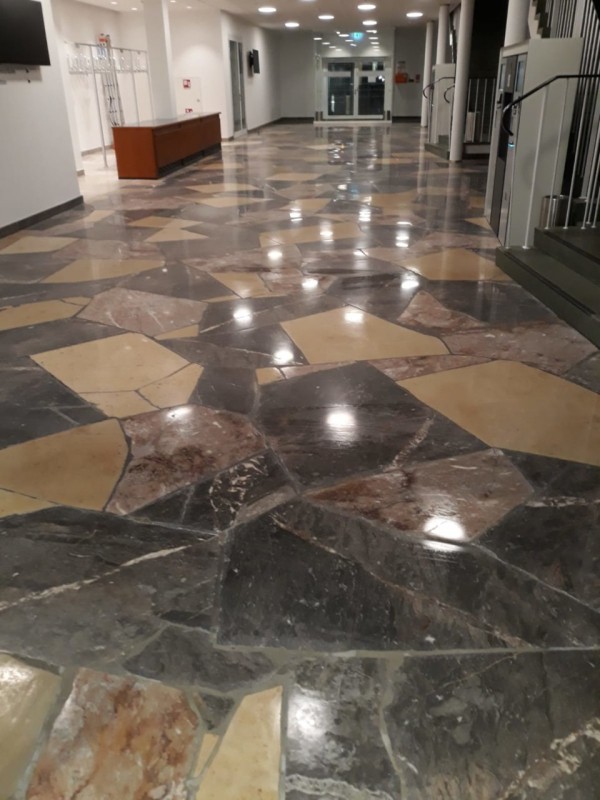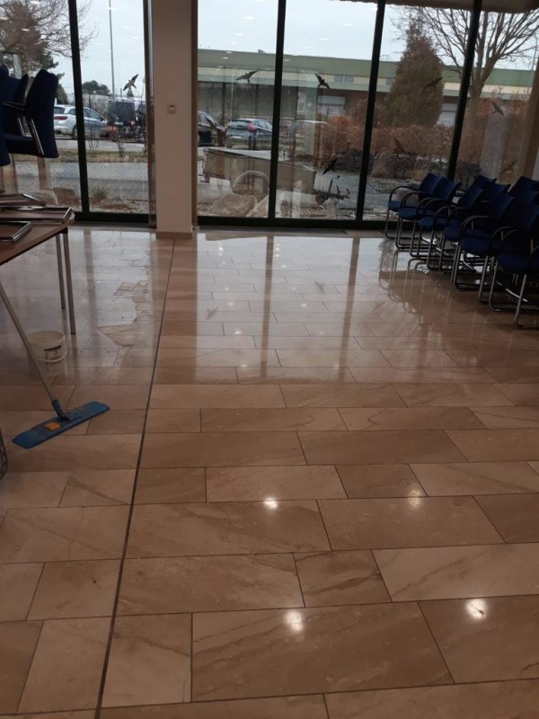 Bei der Kristallisation wird die Oberflächenschicht verdichtet und schließlich zu einem Tiefenglanz poliert. Hier sind Beispiele vor und nach der Behandlung.